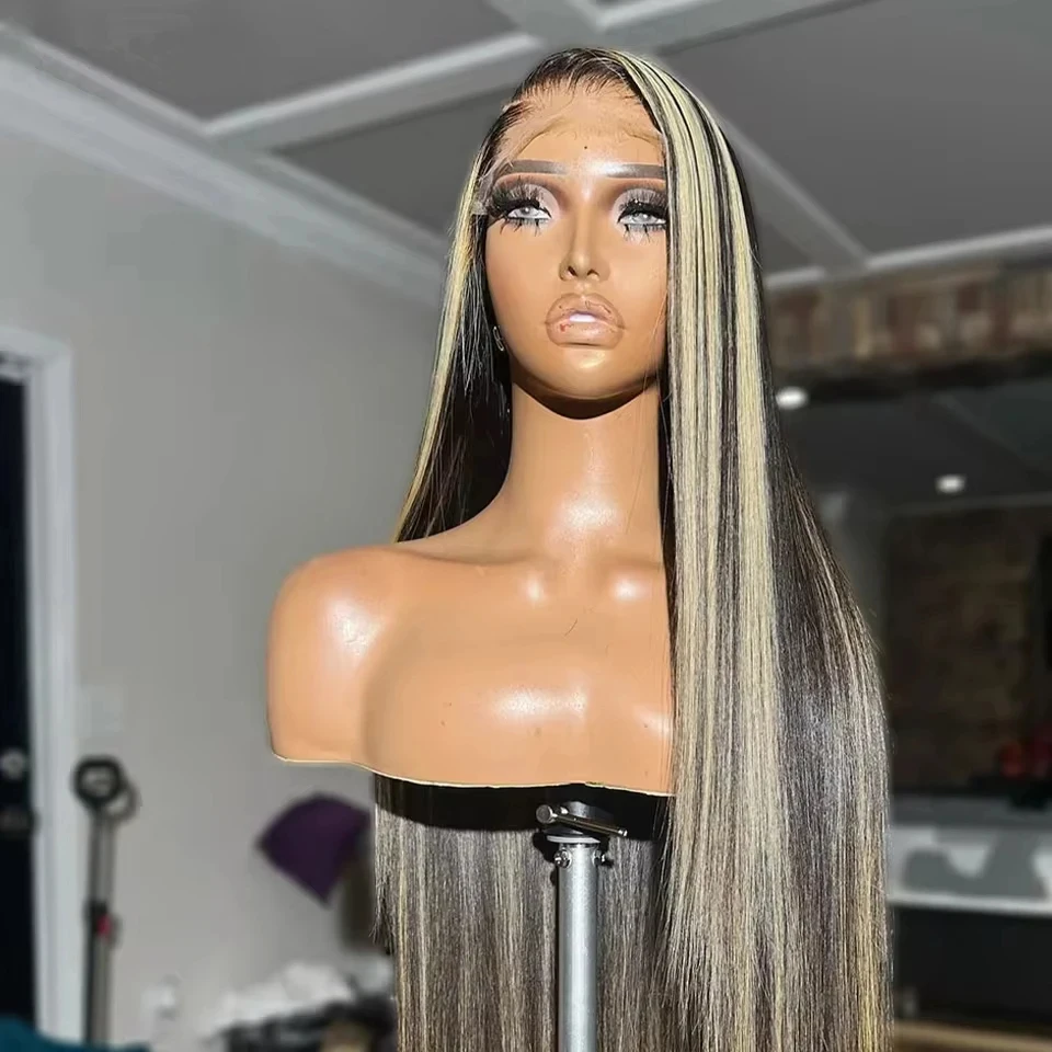Perruques brésiliennes en cheveux naturels lisses à reflets 1B/27, 30 pouces, 13x4, HD, 200 % cheveux humains, couleur naturelle, pour femmes